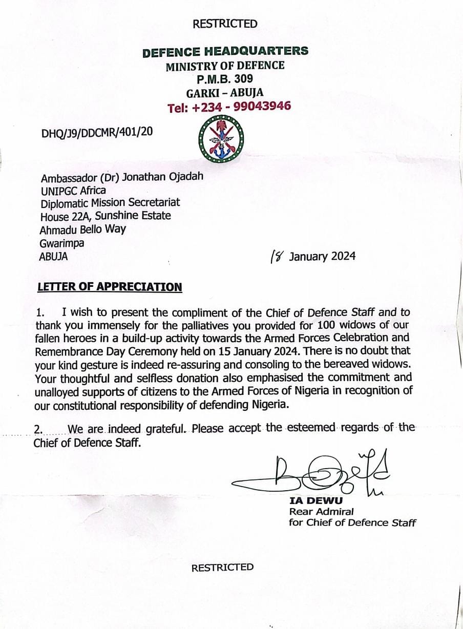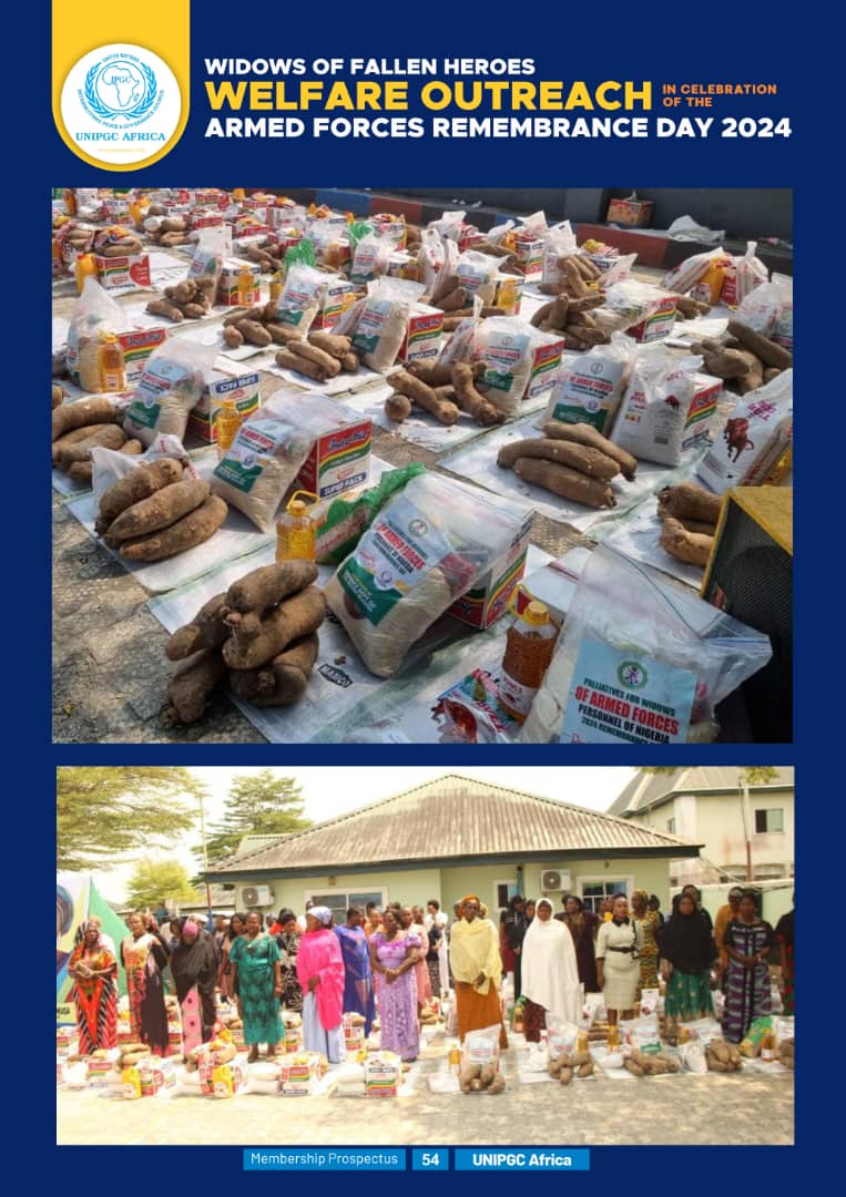 @UNIPGC AFRICA, we express our sincere admiration for the strength and dedication demonstrated by the valiant men and women of the Nigerian Armed Forces, as well as pay tribute to our fallen heroes who made the ultimate sacrifice in the line of duty. As a testament to our gratitude, we proudly present the initiative named WIDOWS OF FALLEN HEROES WELFARE OUTREACH in honor of the NIGERIAN ARMED FORCES CELEBRATION & REMEMBRANCE DAY 2024.