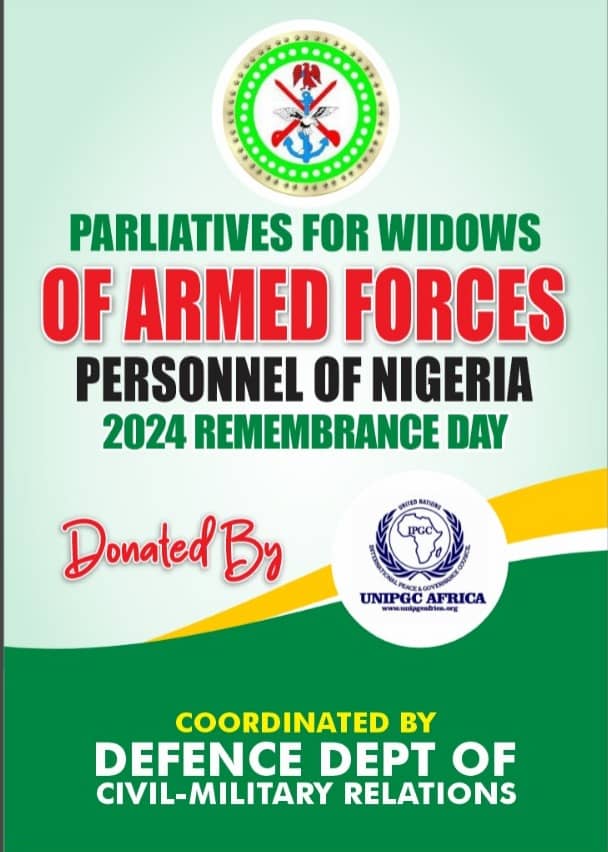 @UNIPGC AFRICA, we express our sincere admiration for the strength and dedication demonstrated by the valiant men and women of the Nigerian Armed Forces, as well as pay tribute to our fallen heroes who made the ultimate sacrifice in the line of duty. As a testament to our gratitude, we proudly present the initiative named WIDOWS OF FALLEN HEROES WELFARE OUTREACH in honor of the NIGERIAN ARMED FORCES CELEBRATION & REMEMBRANCE DAY 2024.